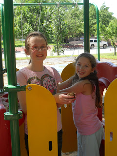 The kids played for a long time in the play place, while Tara and I chatted. Then somebody else's kid threw up on the slide....EWWWWW....so yeah, it was time to hit the road, jack! We decided to head to a local park where the kids could keep playing and we could keep talking!